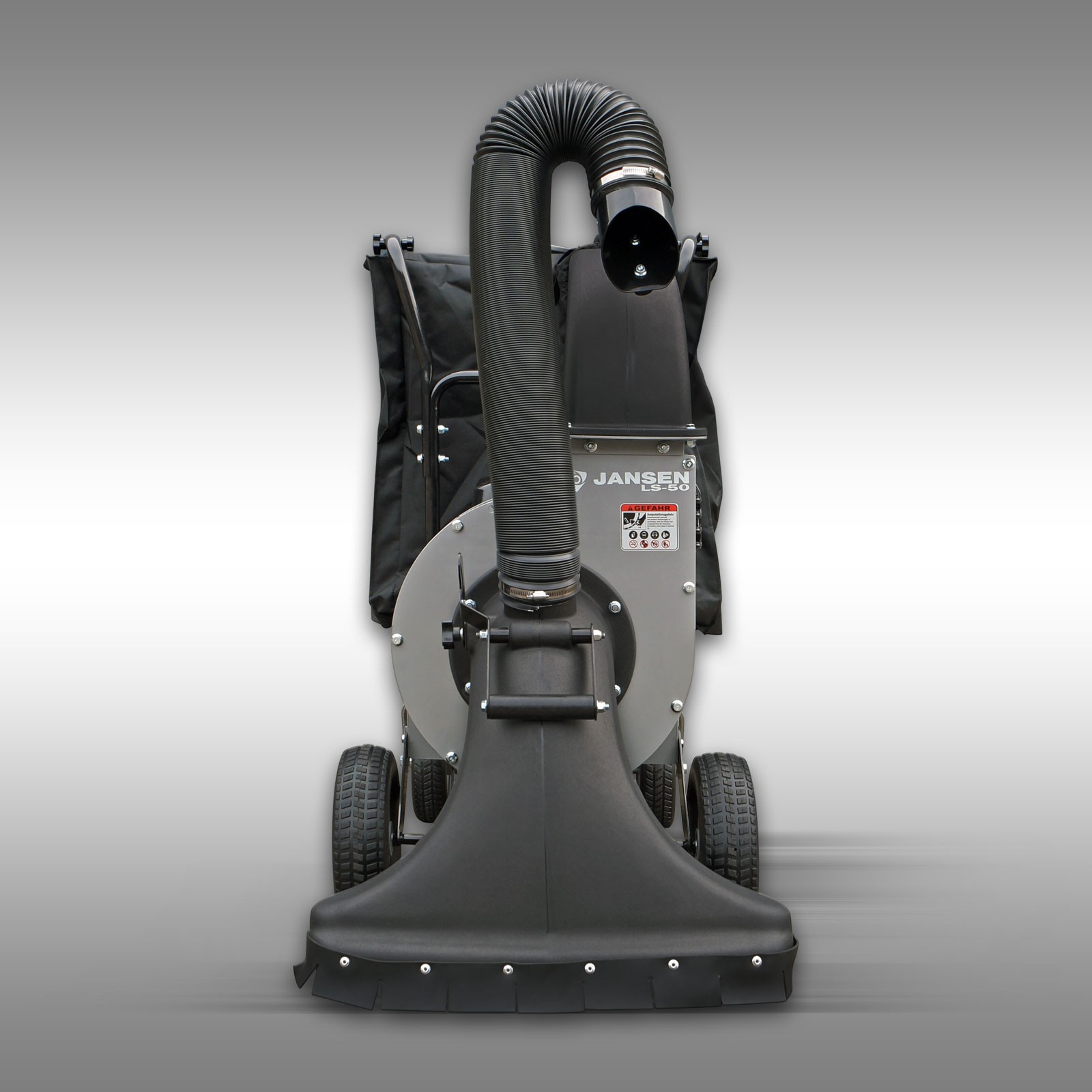 Aspirateur / souffleur à feuilles Jansen LS-100 – autotractéMotorisation Kohler 6,5 CV, sac de ramassage 240 L, tuyau flexible 3 m pour accès difficiles.Fonction souffleur : conversion rapide via kit inclus.Largeur de travail 73 cm, maniabilité et puissance optimale.