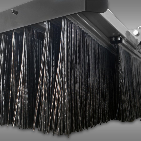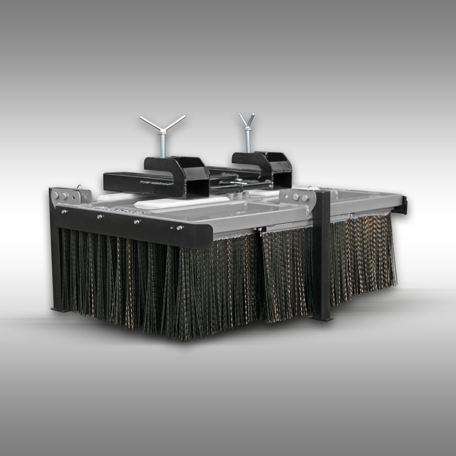 Balai brosse robuste, rangées de brosses remplaçables, aucune hydraulique nécessaire.