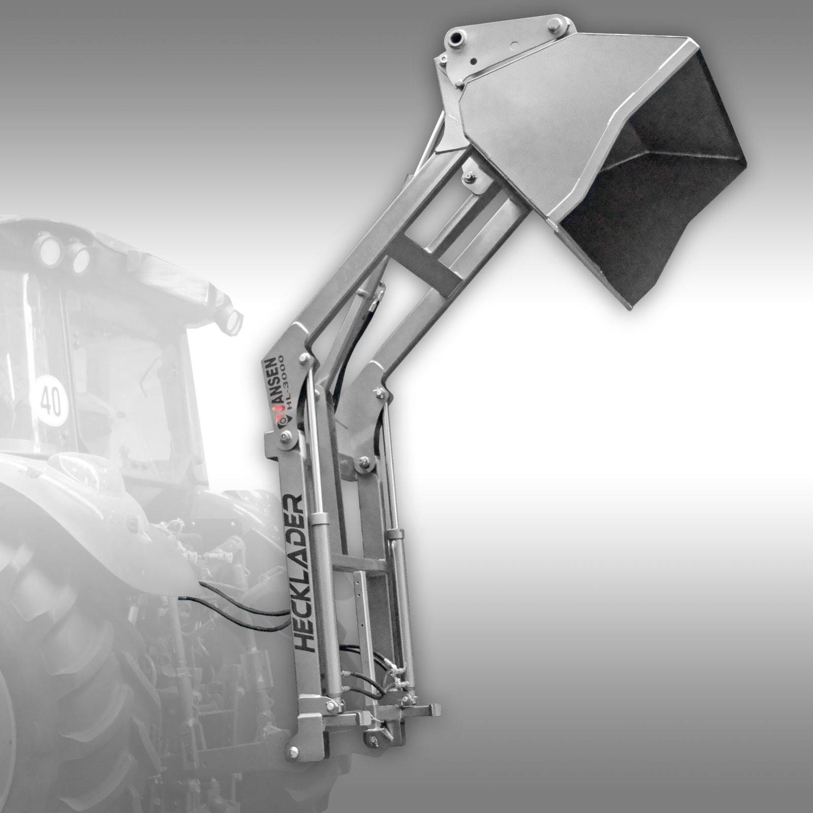 Chargeur arrière Jansen HL-3000 – Godet hydraulique – 3 points Cat. I – Attelage-Euro