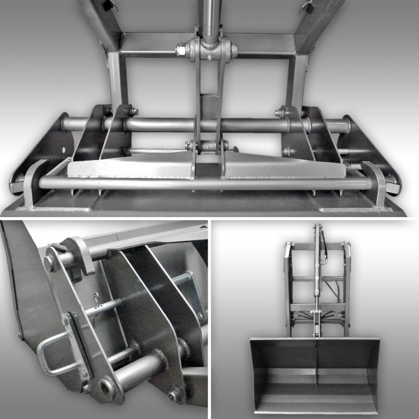- Hydraulique double effet pour levage et basculement, commandes depuis le tracteur.