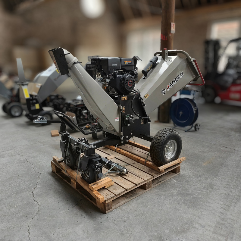 Broyeur de branches et végétaux thermique Jansen GTS-13 – 15 CV Loncin. Équipé de 2 trémies distinctes pour broyer efficacement : jusqu’à 9 cm de diamètre pour les grosses branches et un système à 24 marteaux libres pour feuillages, paille et branchages fins. Polyvalent, robuste et puissant, il est idéal pour le jardinage intensif et l’élevage (paille,...