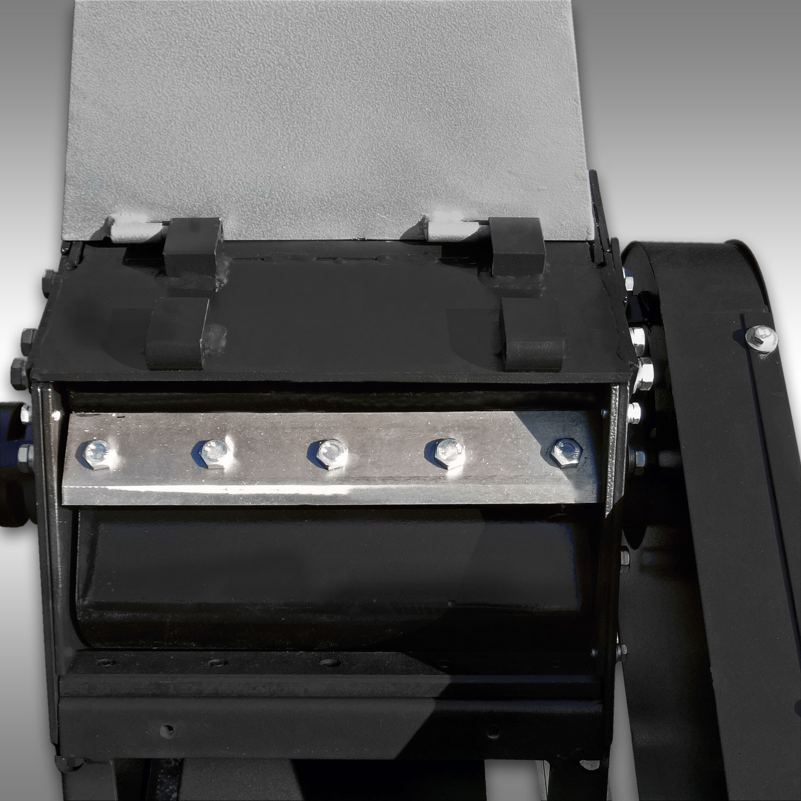 Le cœur du GTS-1500E repose sur un système de broyage à 2 couteaux rotatifs sur arbre + 1 contre-couteau réglable. Ce dispositif aspire automatiquement les branches dans la machine, évitant à l'utilisateur tout effort d'introduction forcée. Résultat : un broyage rapide, puissant et continu, adapté à des sessions de travail prolongées.