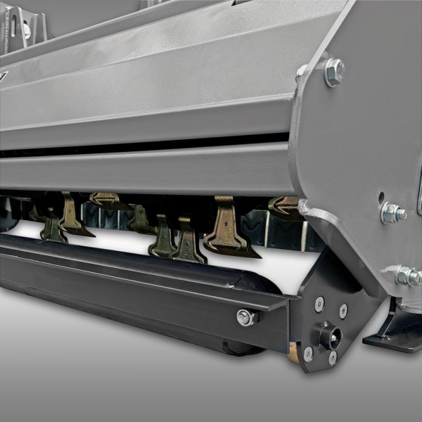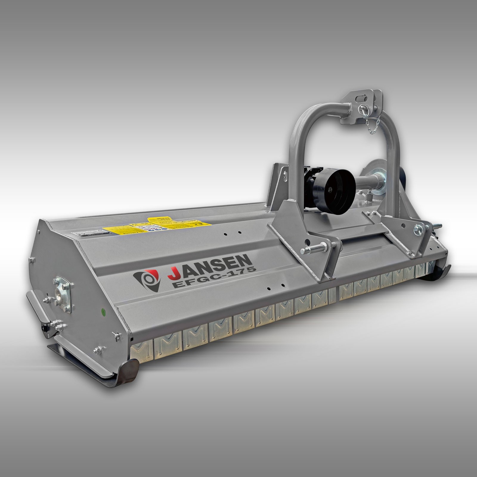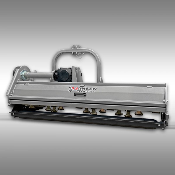 Broyeur à marteaux Jansen EFGC-145, largeur 1,42 m, version lourde avec boîte renforcée, rotor à double spirale, 24 marteaux de 0,8 kg, rouleau suiveur, PDF 540 tr/min, attelage 3 points cat. I & II.