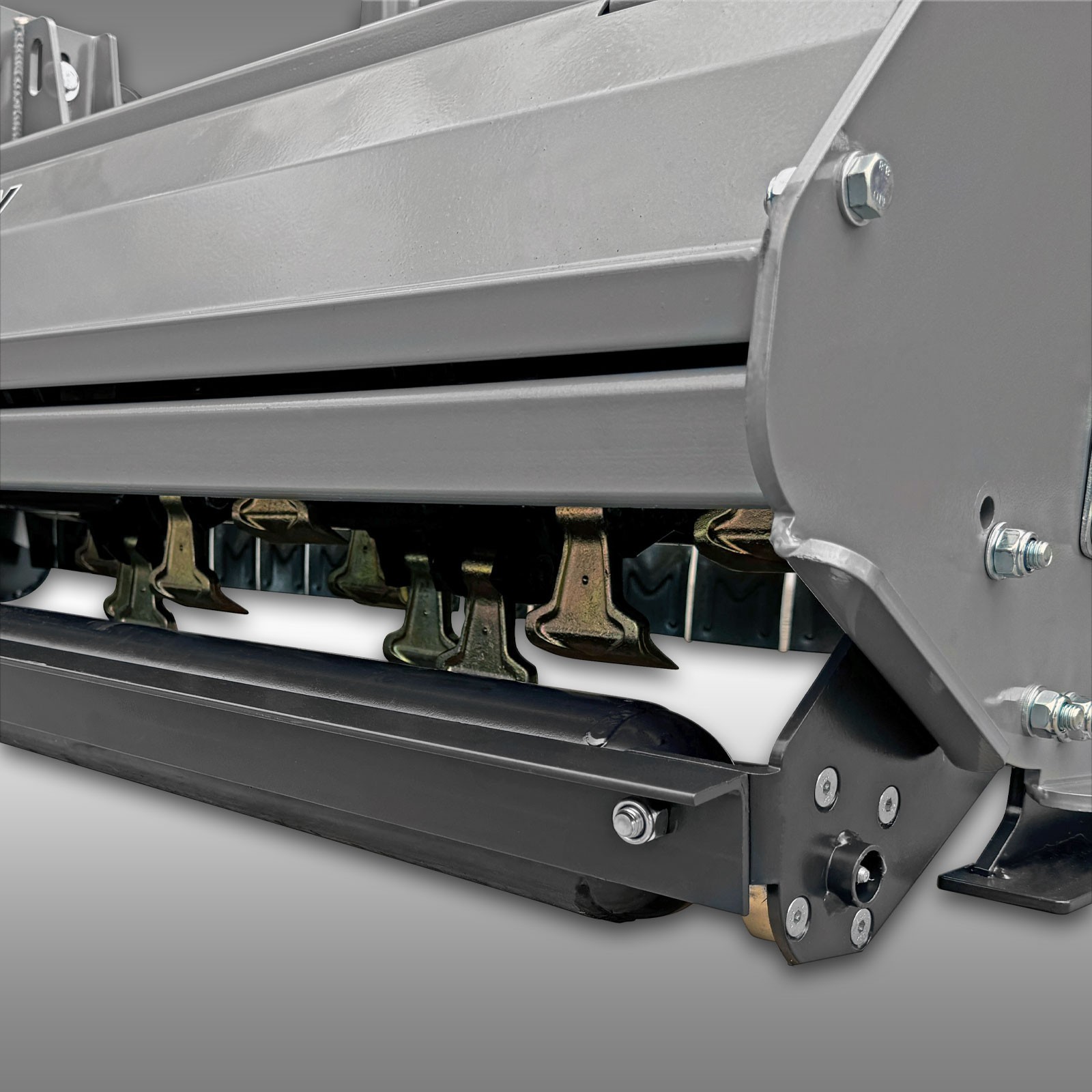 Possède 24 marteaux de 400 g. Réglage facile de la hauteur de coupe. Montage possible sur Quad, ATV, tracteur-tondeuse ou micro-tracteur via une boule d'attelage standard.