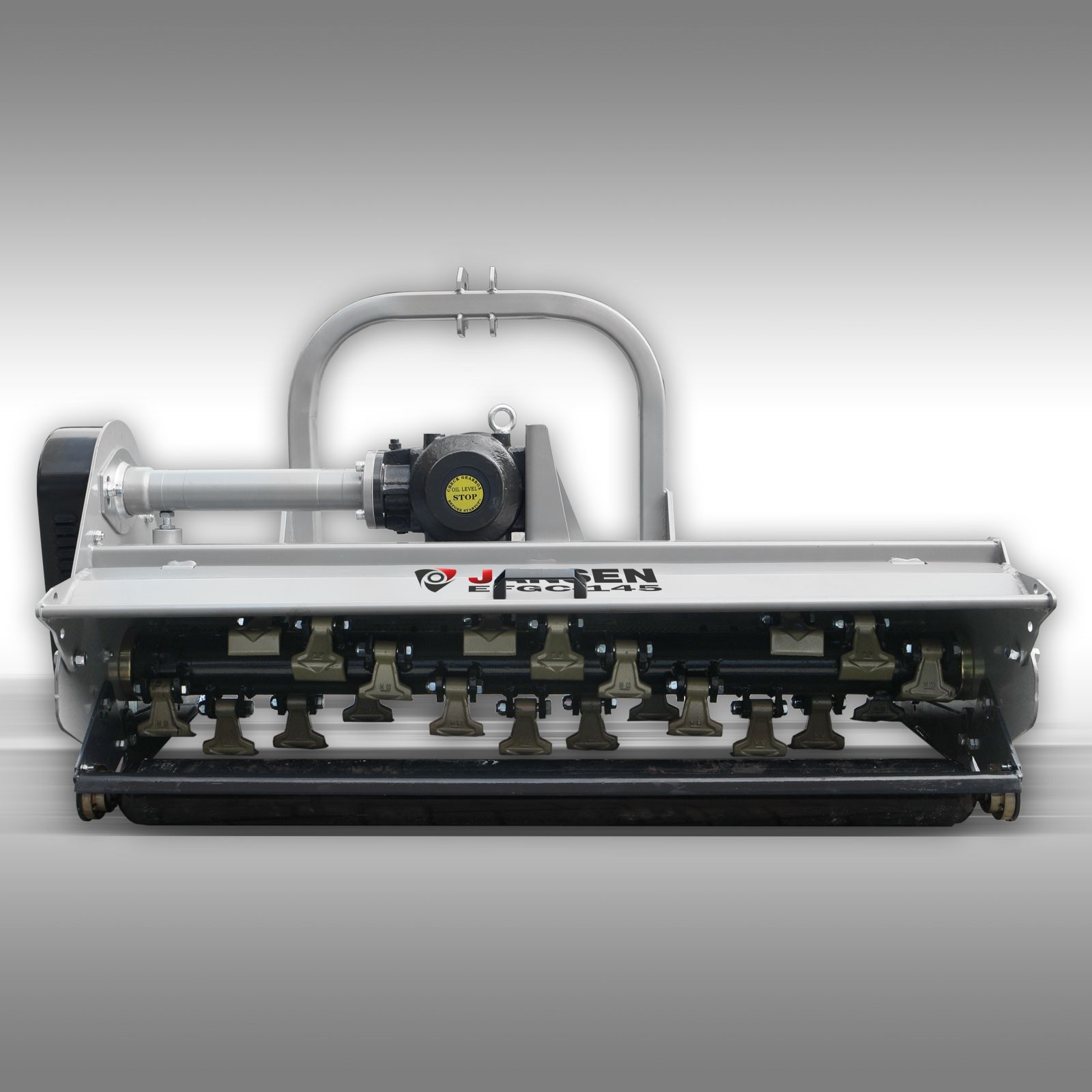 Broyeur à marteaux Jansen EFG-125, largeur 1,20 m, lourd et très robuste, boîte renforcée, 21 marteaux ~400 g, rouleau suiveur et attelage 3 points cat. I & II, entraînement PDF 540 tr/min.
