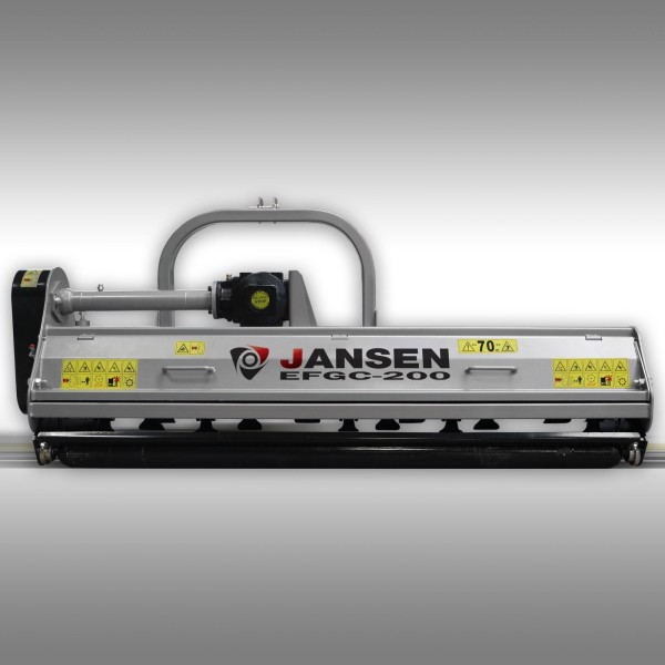 Broyeur à marteaux Jansen EFGC-175, largeur 1,72 m, construction lourde, boîte renforcée avec roue libre, 28 marteaux de 800 g, rouleau suiveur, trappe de visite, PDF 540 tr/min, pour tracteurs dès 30 CV.