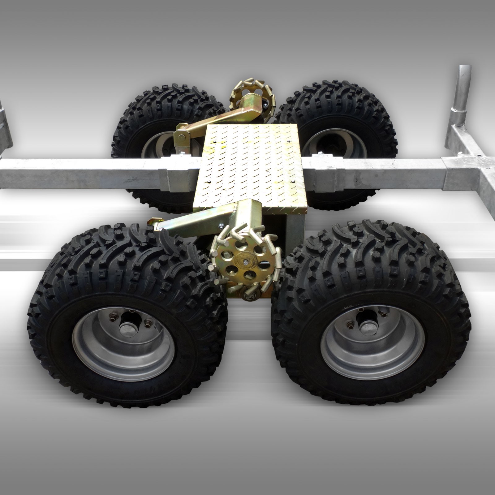 - Roues agricoles 22x11x10, passage facile sur chemins roulants, boueux ou forestiers.